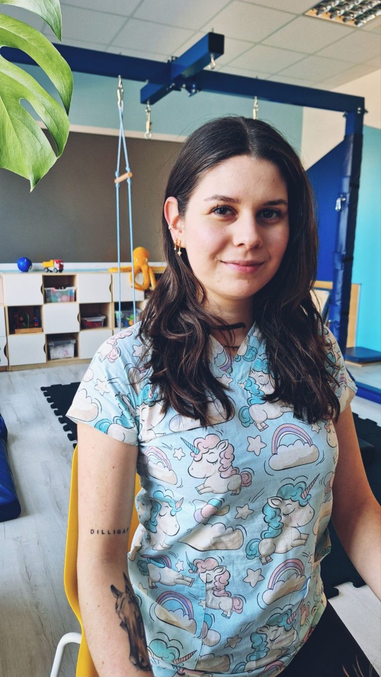 Jest niezwykle doświadczonym fizjoterapeutą, który emanuje pasją i zaangażowaniem w pracy z najmłodszymi. Posiada tytuł magistra fizjoterapii oraz certyfikat terapeuty Integracji Sensorycznej. Jej specjalizacja obejmuje terapię dzieci z różnorodnymi wyzwaniami, włączając w to wady postawy, wady genetyczne oraz zaburzenia integracji sensorycznej.